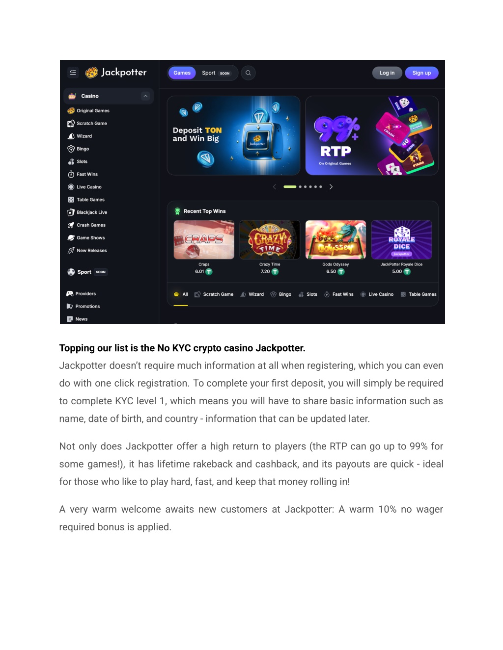 Concerning the Top-Rated No-KYC Online Gambling Enterprises