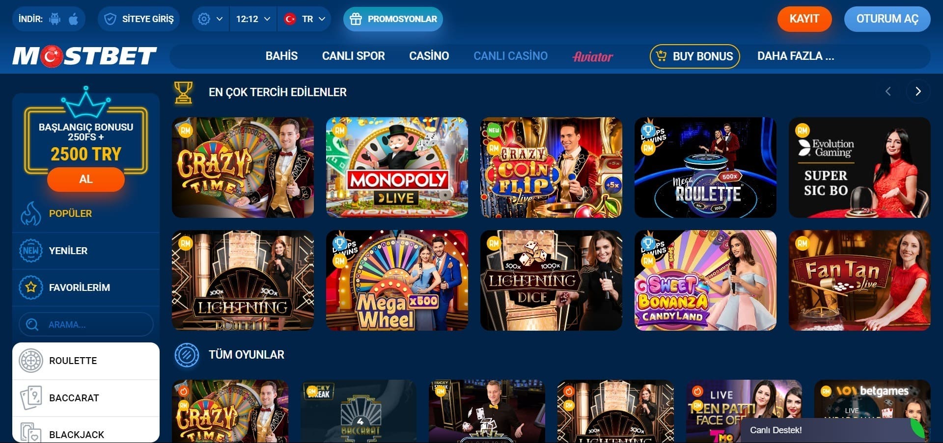 8.1 Site de Cassino e Cassino ao Vivo da MostBet